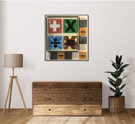 SIZE: 24" x 24" x 2" MATERIALS: Woods, plastics, metal, acrylics & oils. This Artsong...