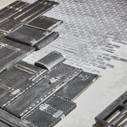SIZE: 24" x 24" x 2.5" MATERIALS: Woods, rubber, strings, plastics, modeling landscapes, papers, acrylics,...