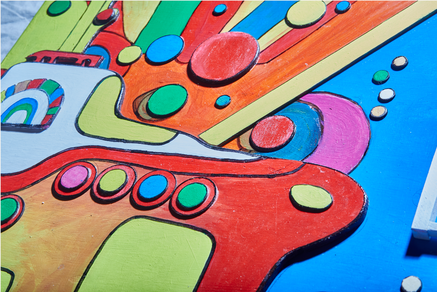 This is one of those great album covers that just makes you smile. The iconic colorful psychedelic cover that defined a generation and will live forever. The specific lyrics where a special request by client.