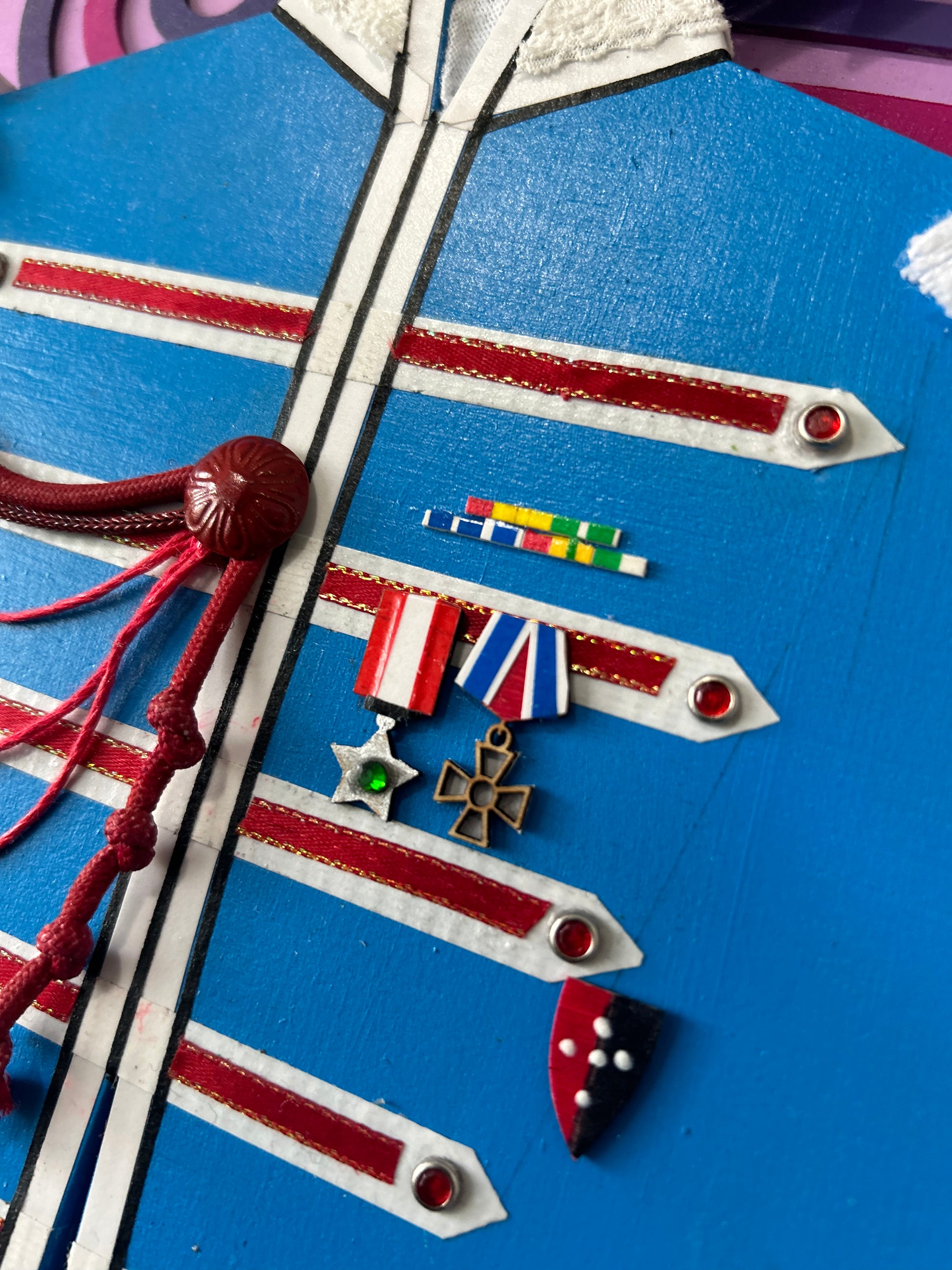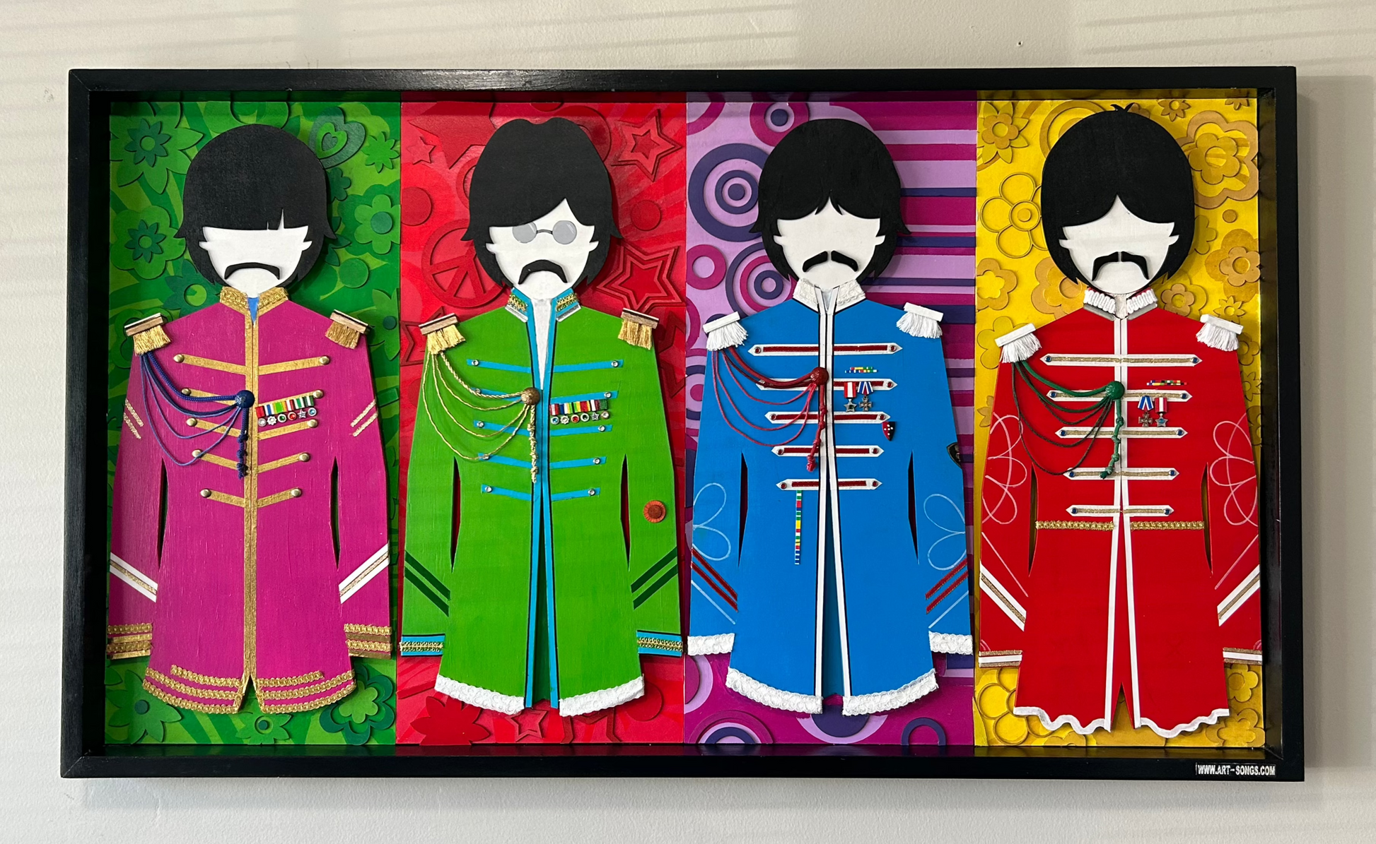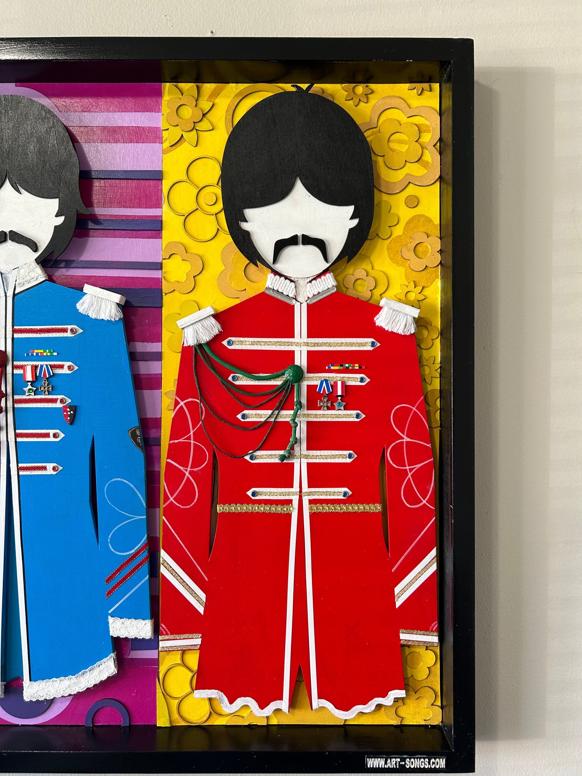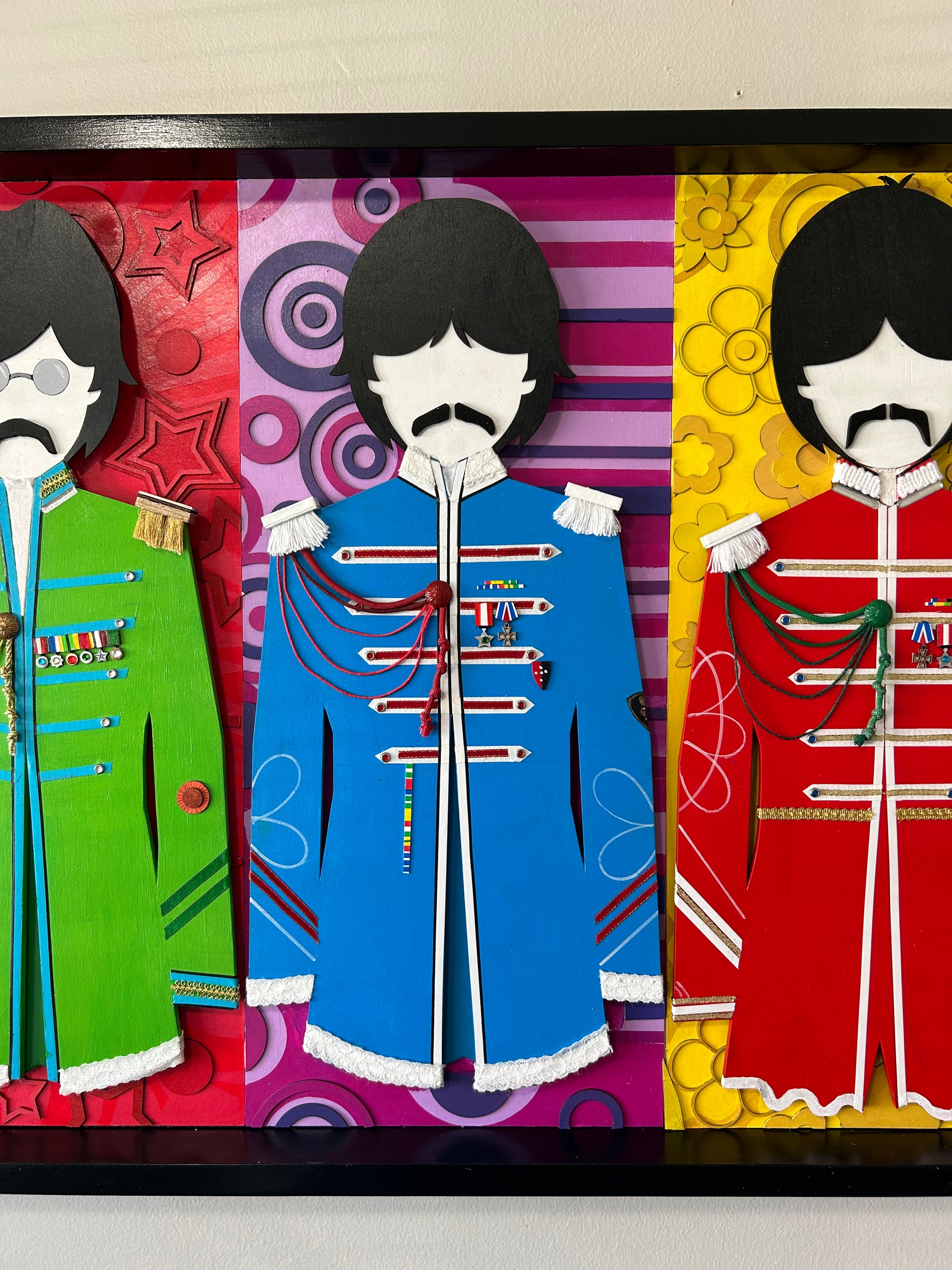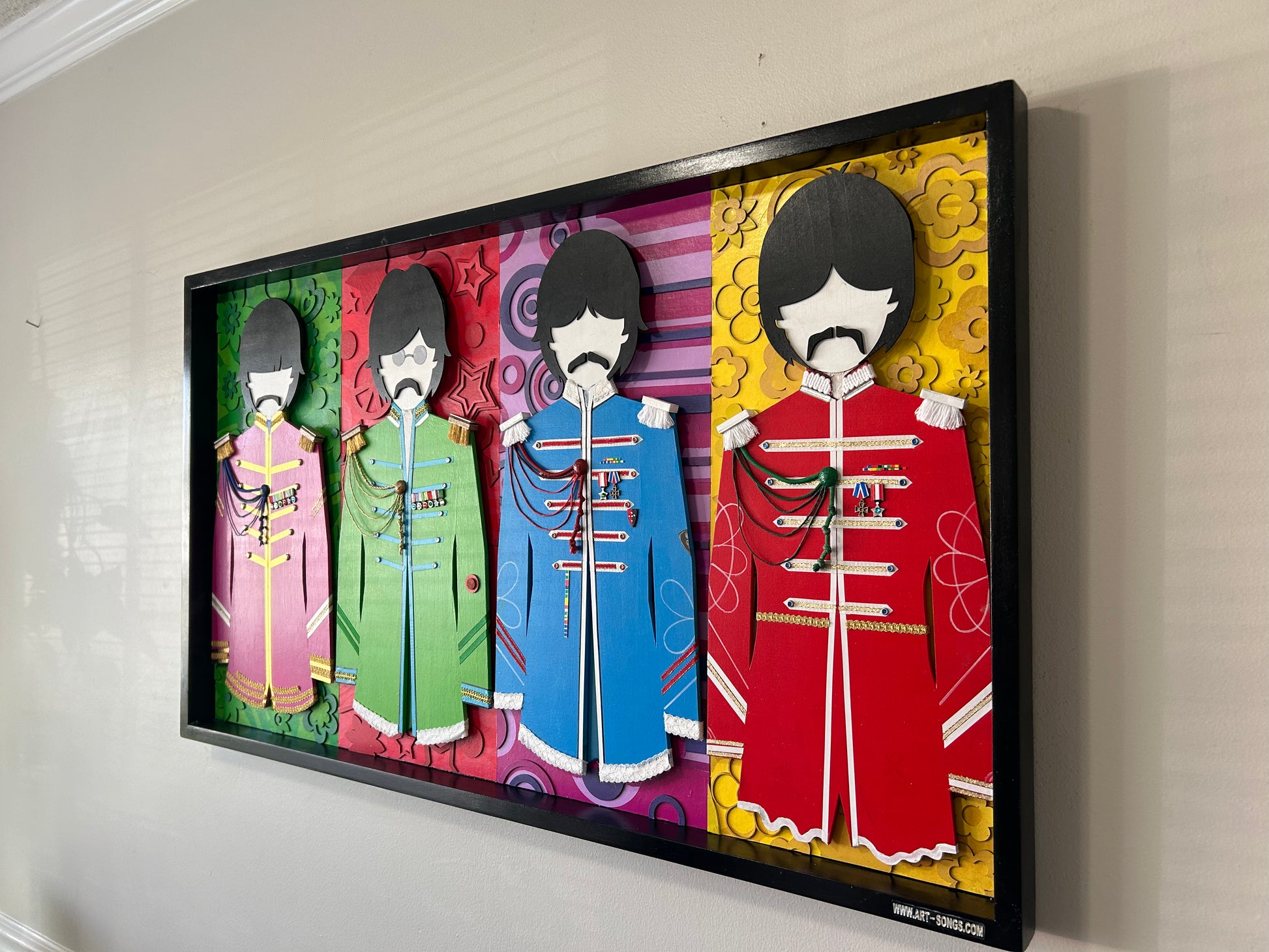 This was created for the Beatles festival Abby Road on The River ,held in Jeffersonville, Indiana every May. Very extensive detail in the jackets with scale ornaments, decorations, medals, etc.