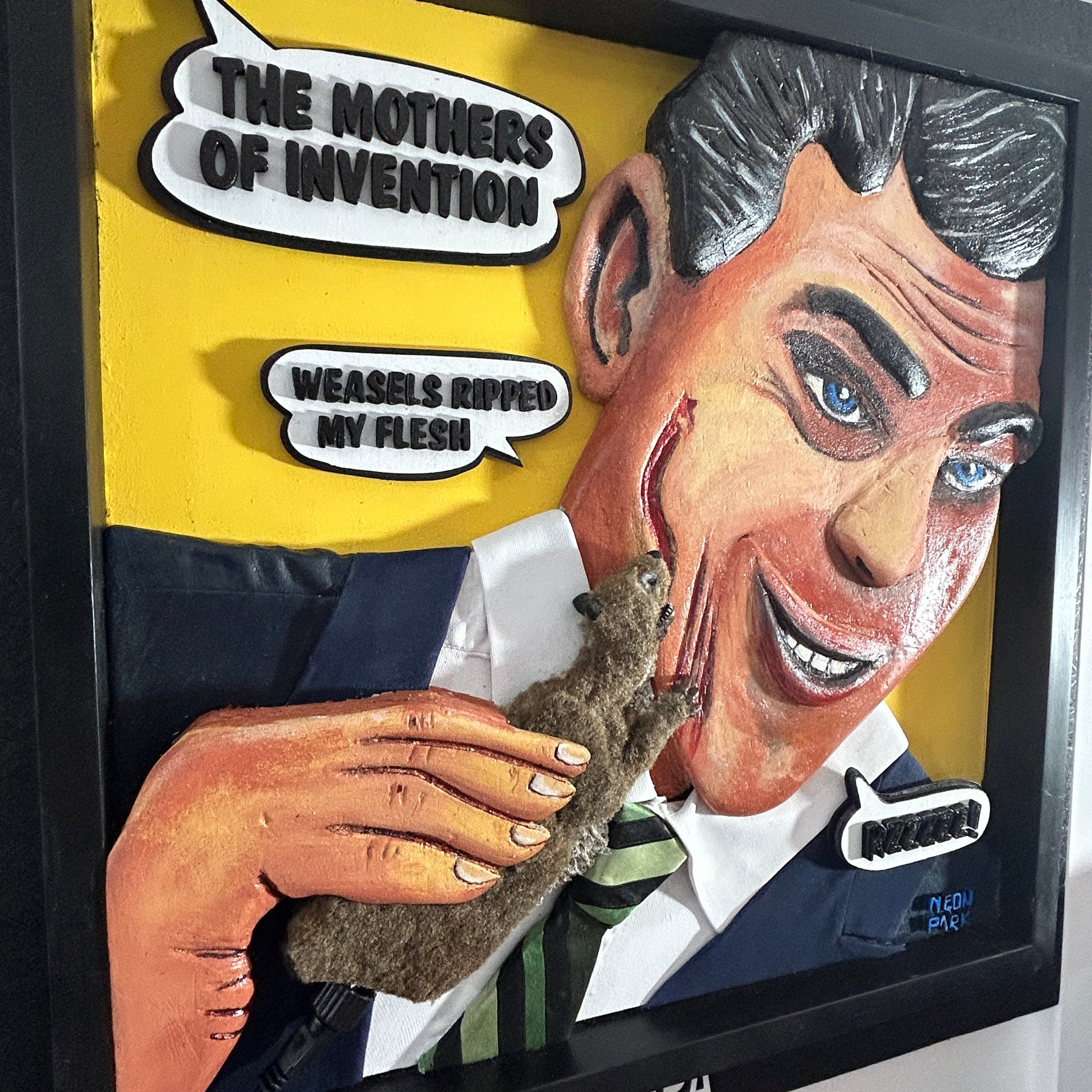 One of Frank Zappa's most iconic album covers. I bring it to live 1-2 scale in 3D with a combination of materials and pieces of a real tie, shirt and jacket.