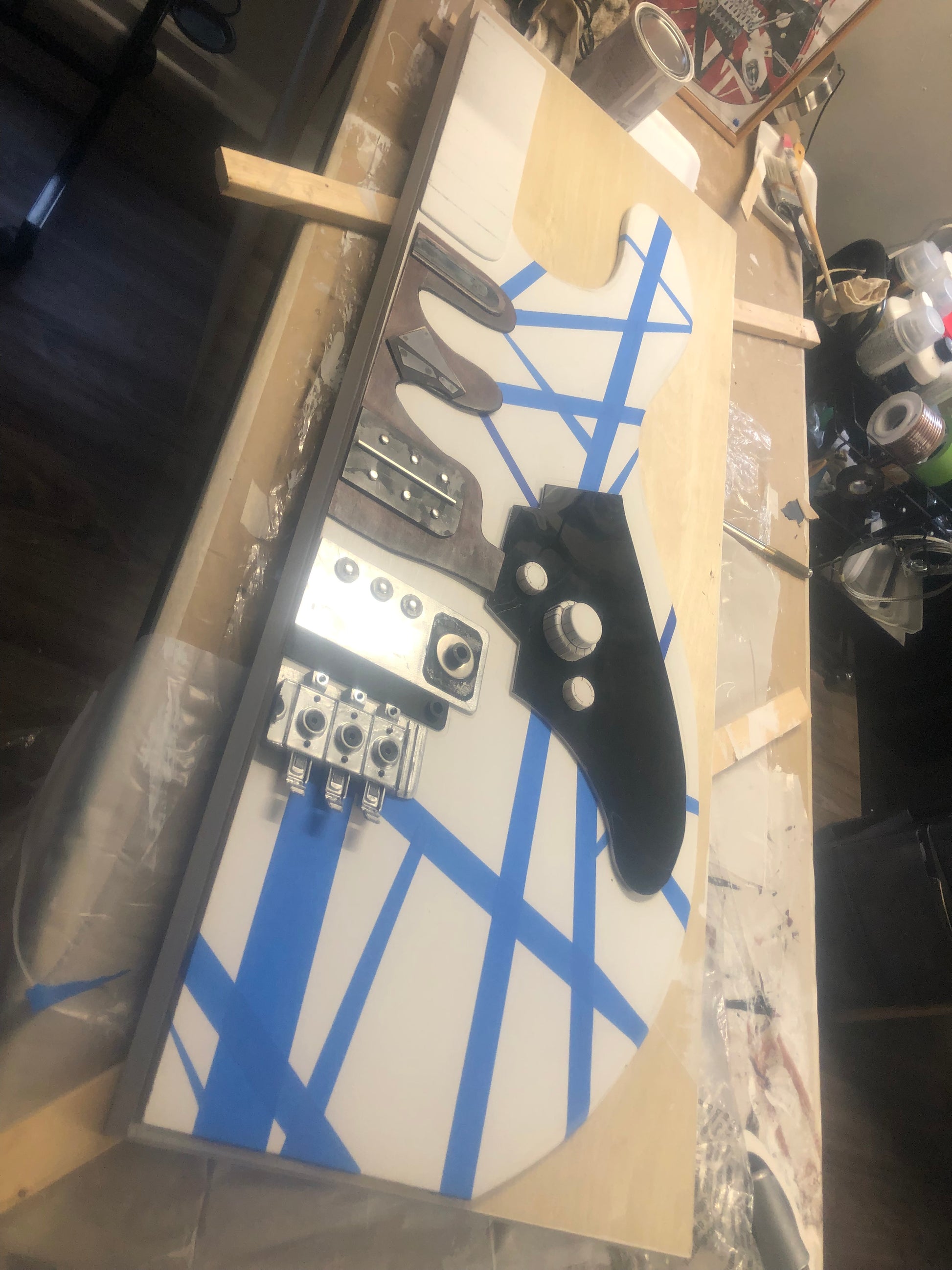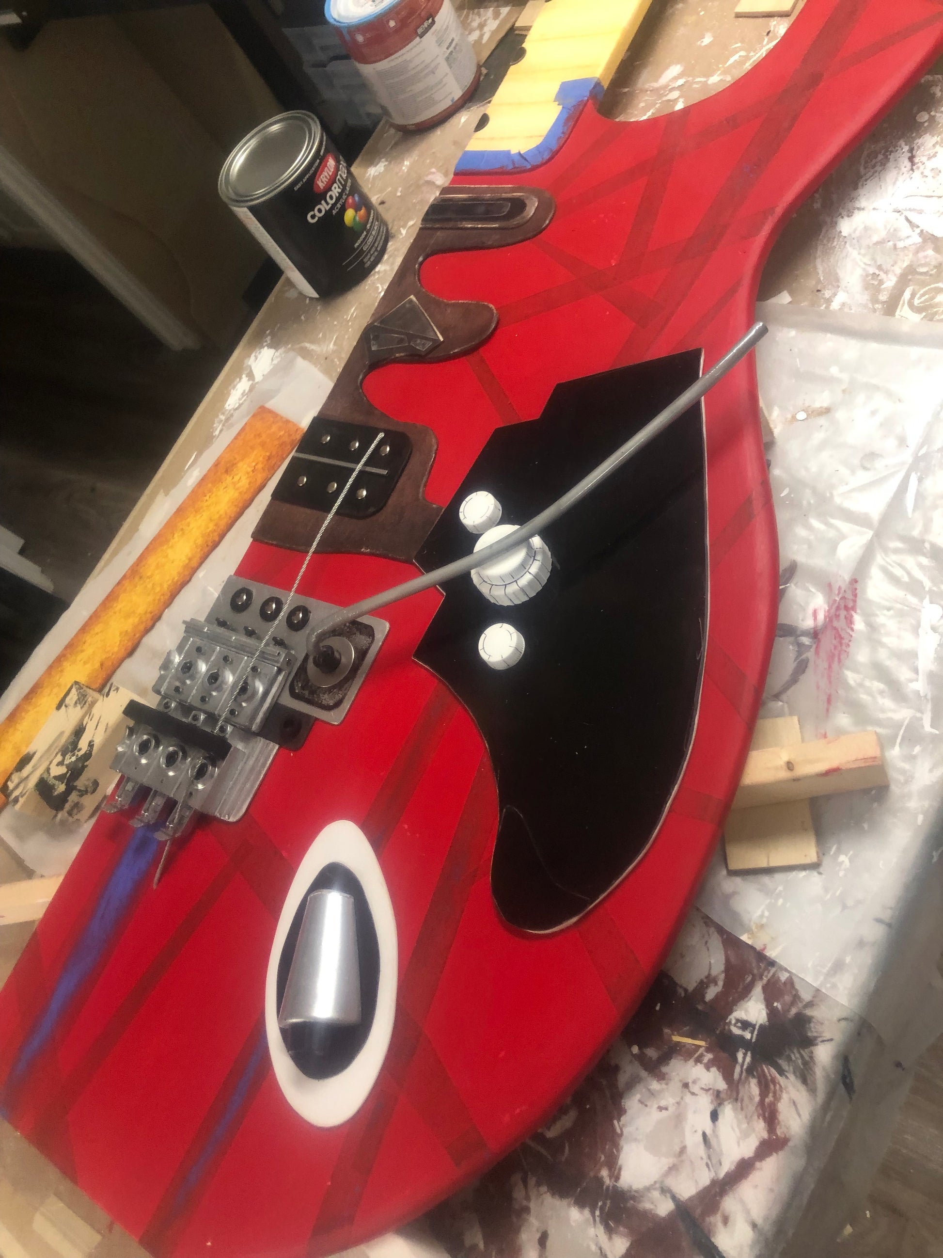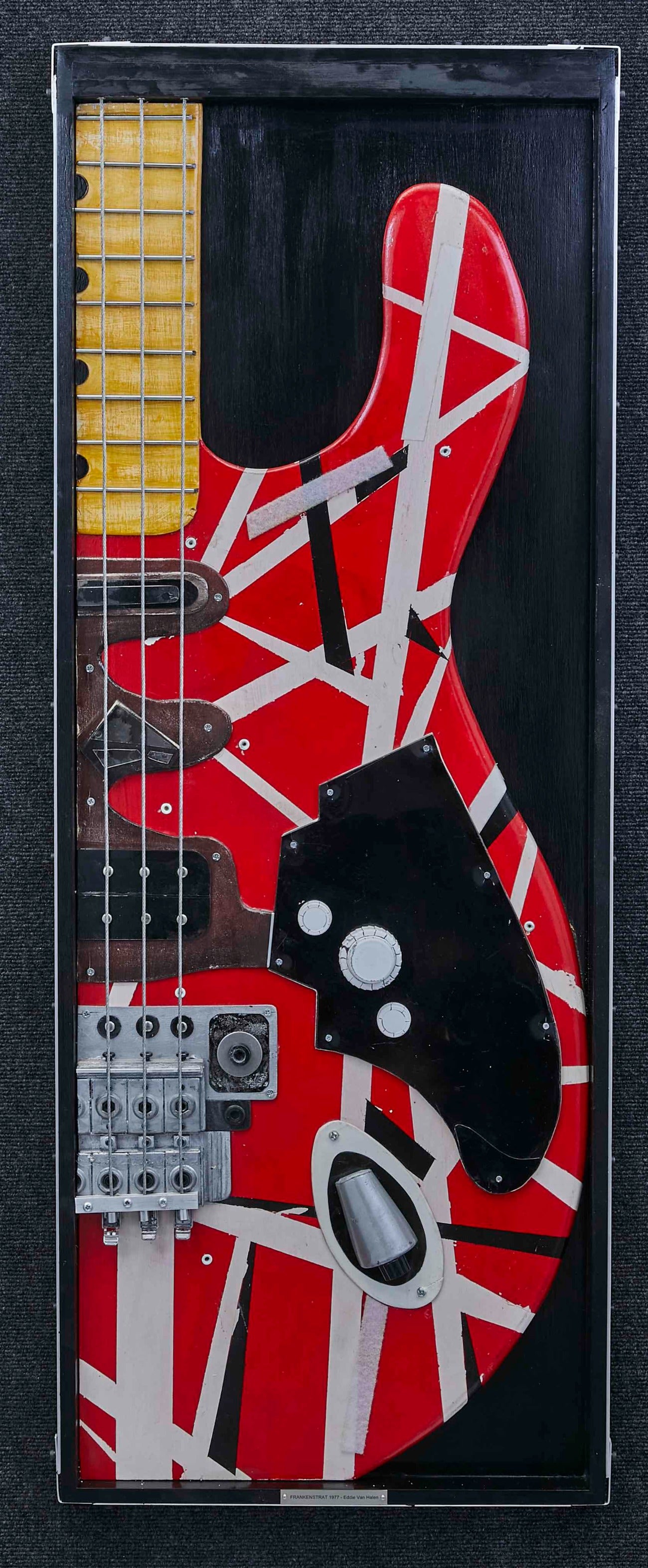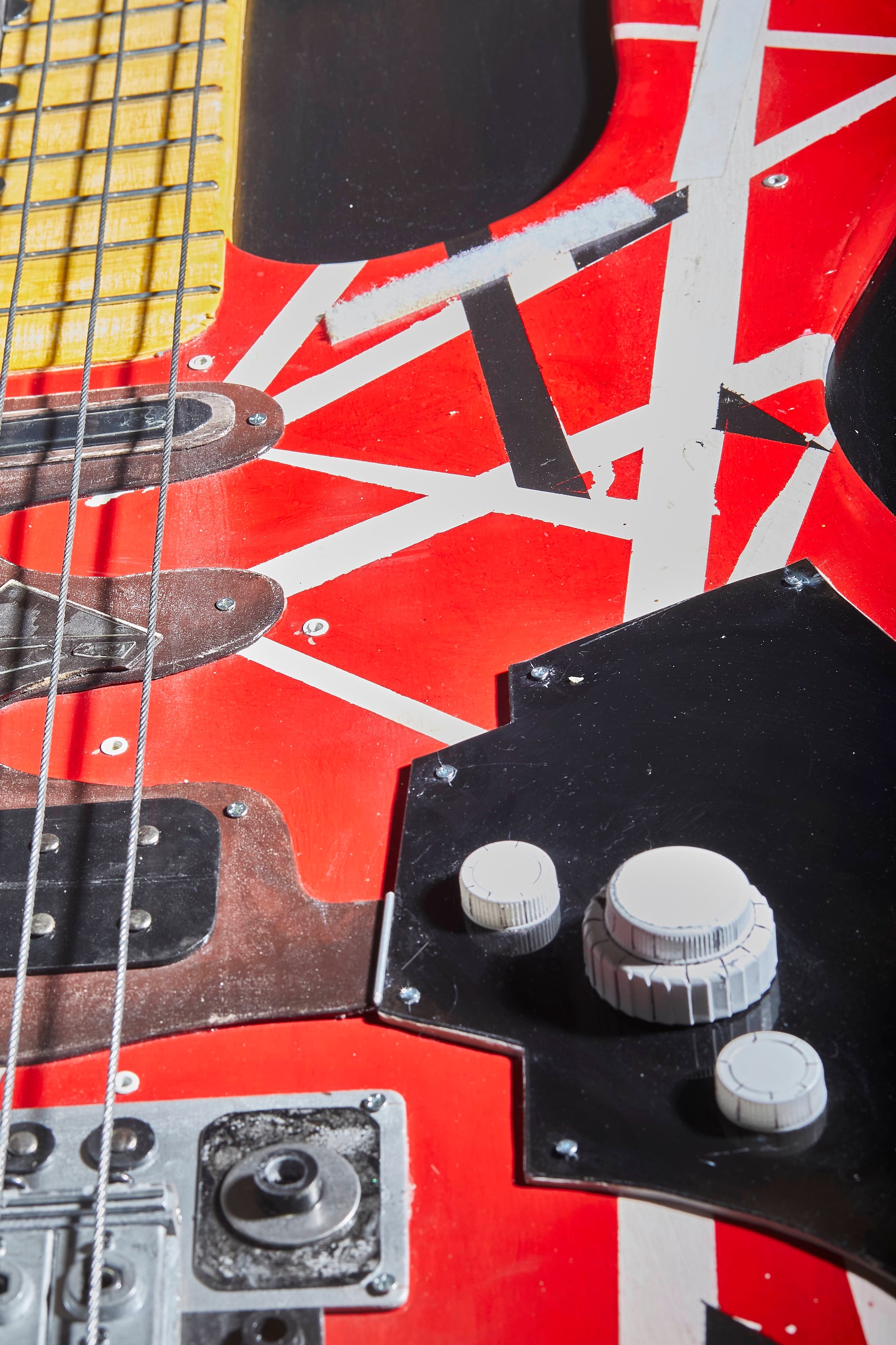 Large size replica inspired by Eddie Van Halen's famous "Frankenstrat" buildt by himself in 1977. This replica is 130% of the actual size. And no, you can't play the strings, it's not a real guitar..!