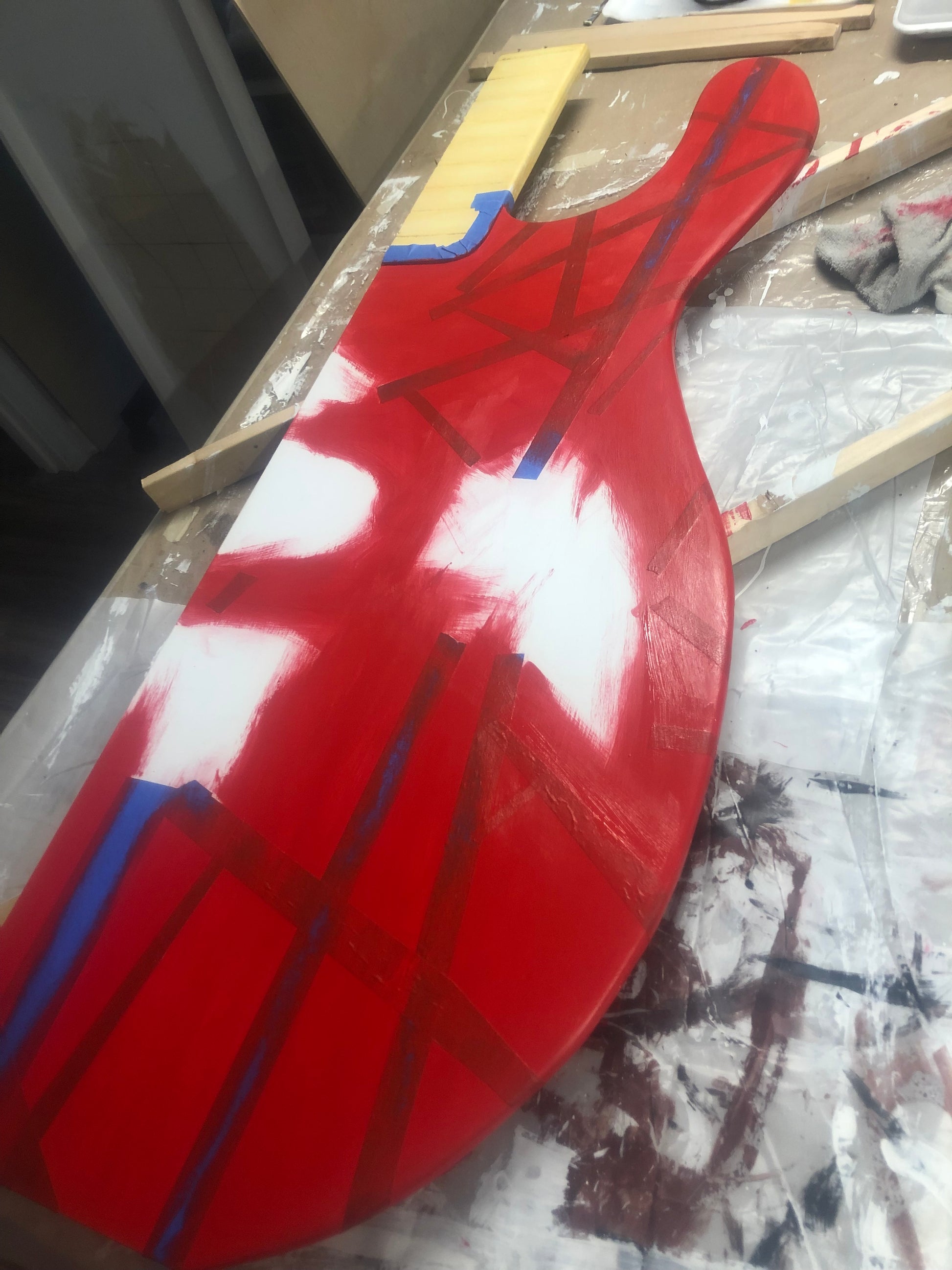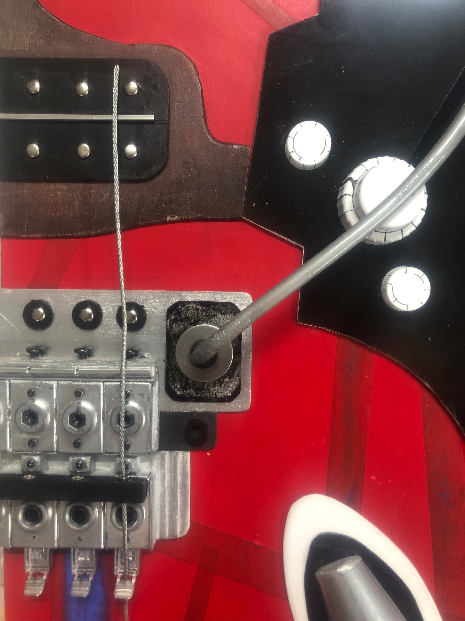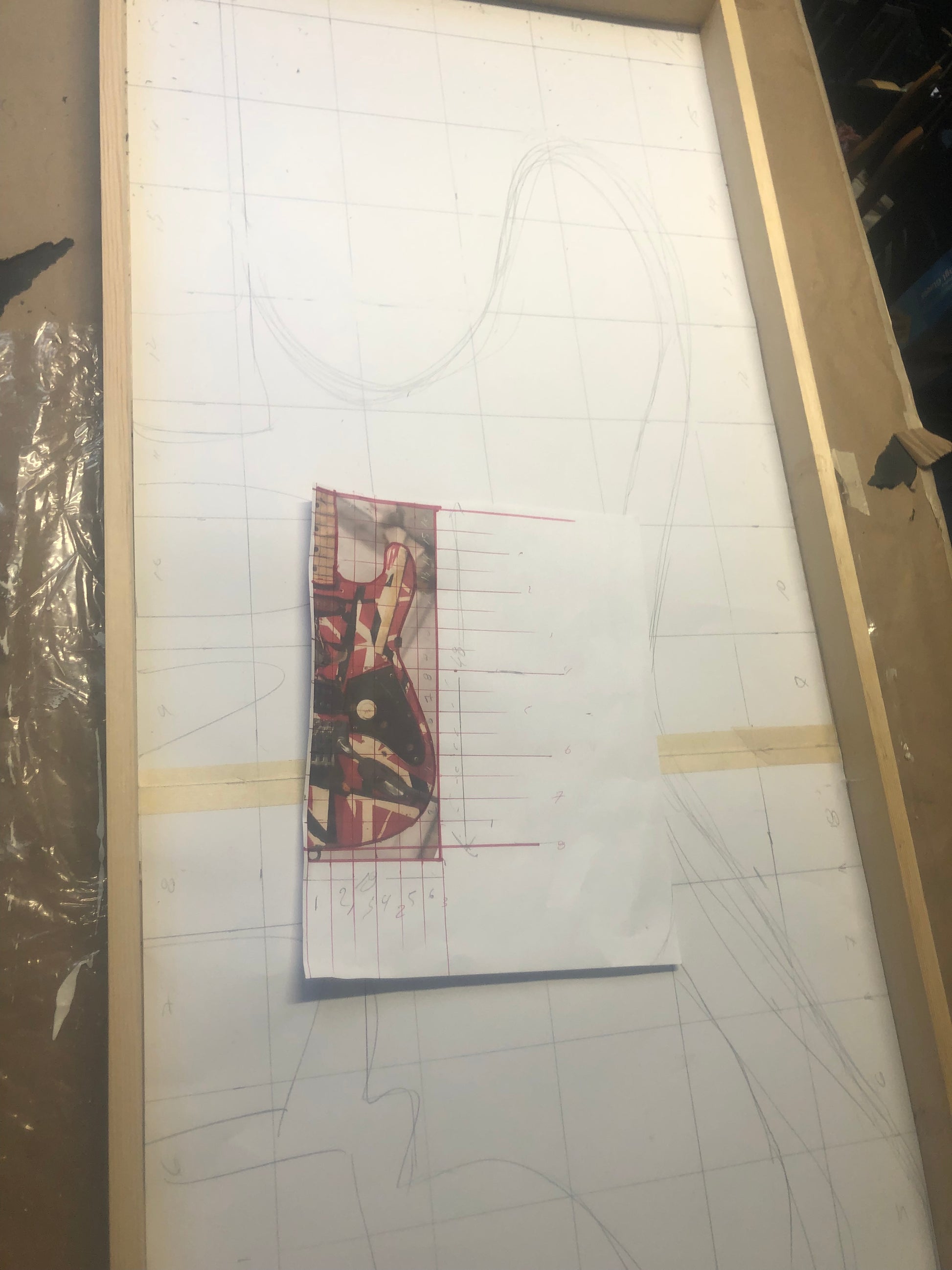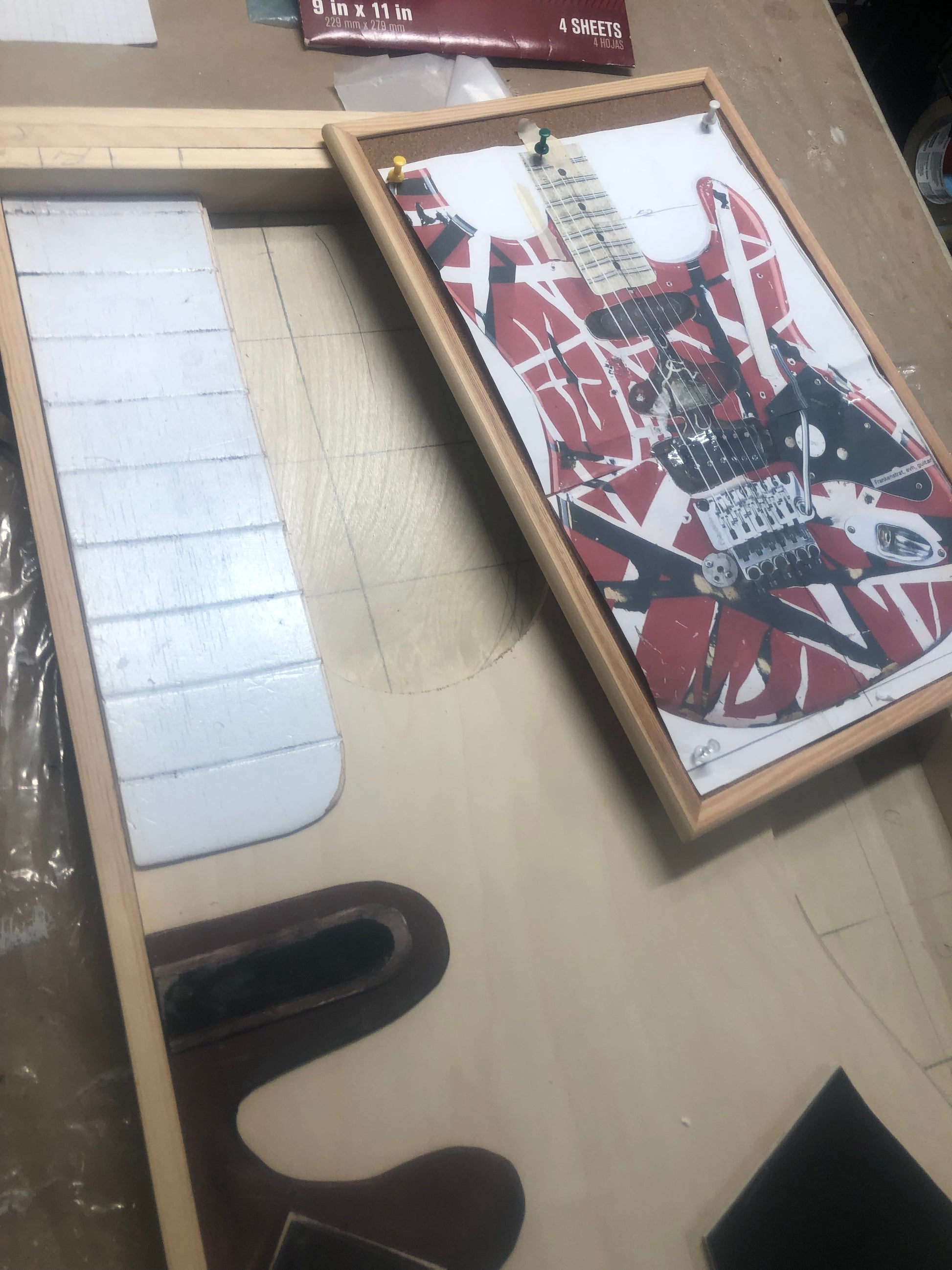 Large size replica inspired by Eddie Van Halen's famous "Frankenstrat" buildt by himself in 1977. This replica is 130% of the actual size. And no, you can't play the strings, it's not a real guitar..!