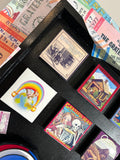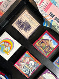 MATERIALS: Woods, plastics, papers, metal, acrylics & oils.