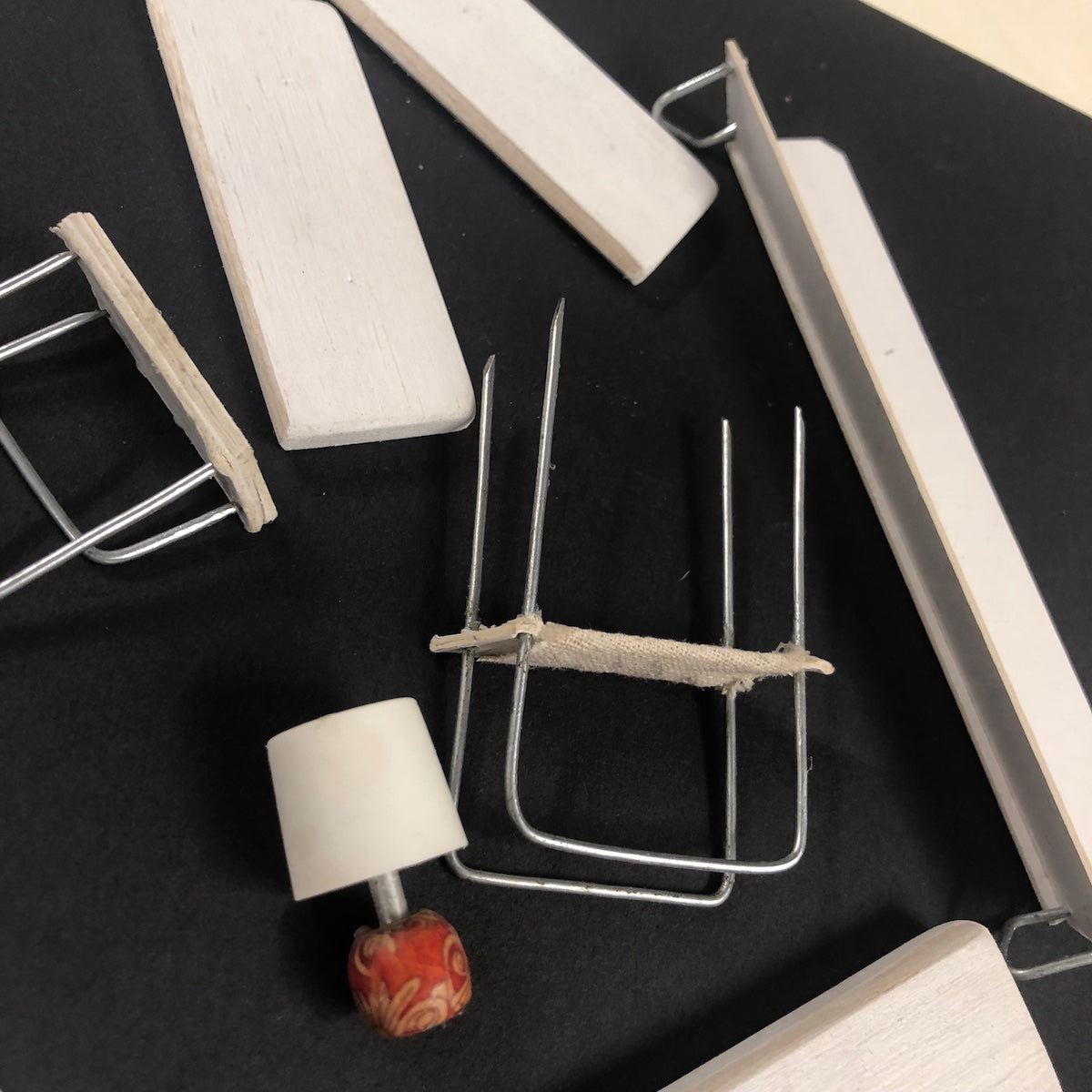 MATERIALS: Woods, plastics, metals, textiles, foams, acrylics, oils & varnishes.