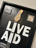 This guitar is featured in the 50th Anniversary Live Aid documentary and signed by Bob Geldof and Midge Ure.