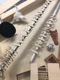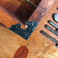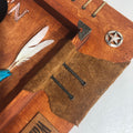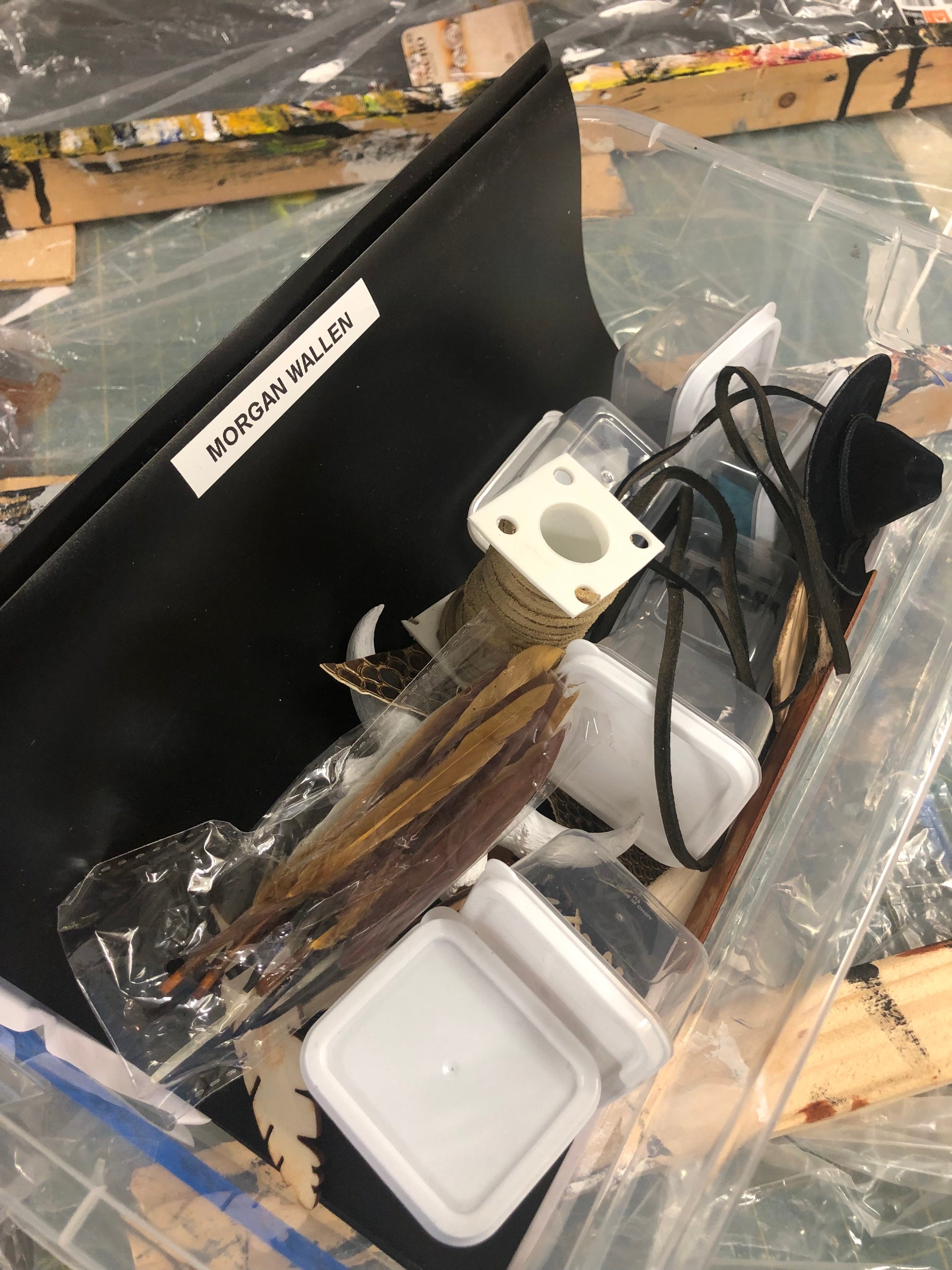 MATERIALS: Woods, metals, leather, steel, stones, papers, beads, feather and paints.