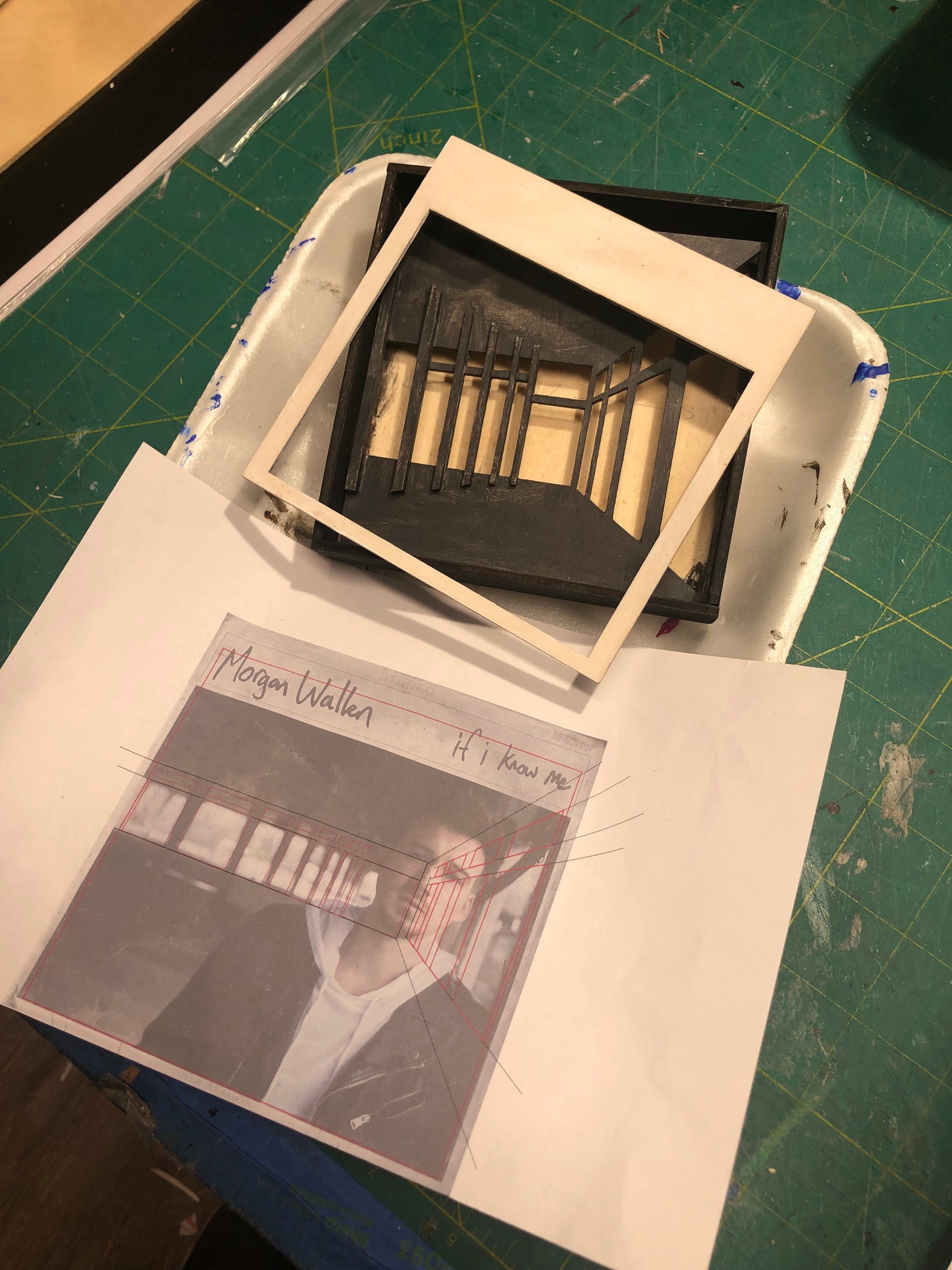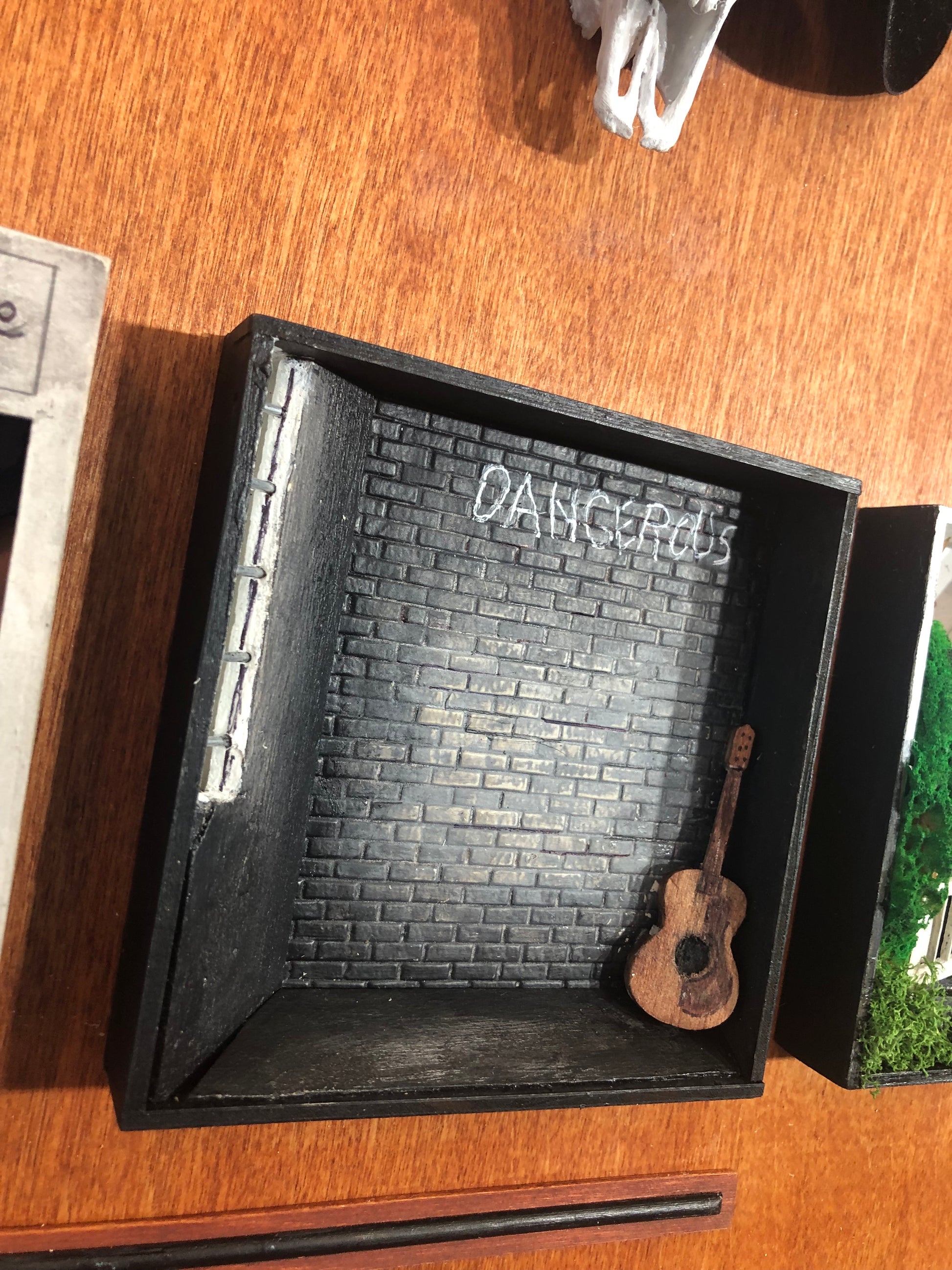 For the center, I reproduced miniature replicas of MW's 3 albums and around the outside borders, I cutout in wood, my daughter's favorite MW songs . The concert ticket I recreated based on the info they gave me from their digital ticket.