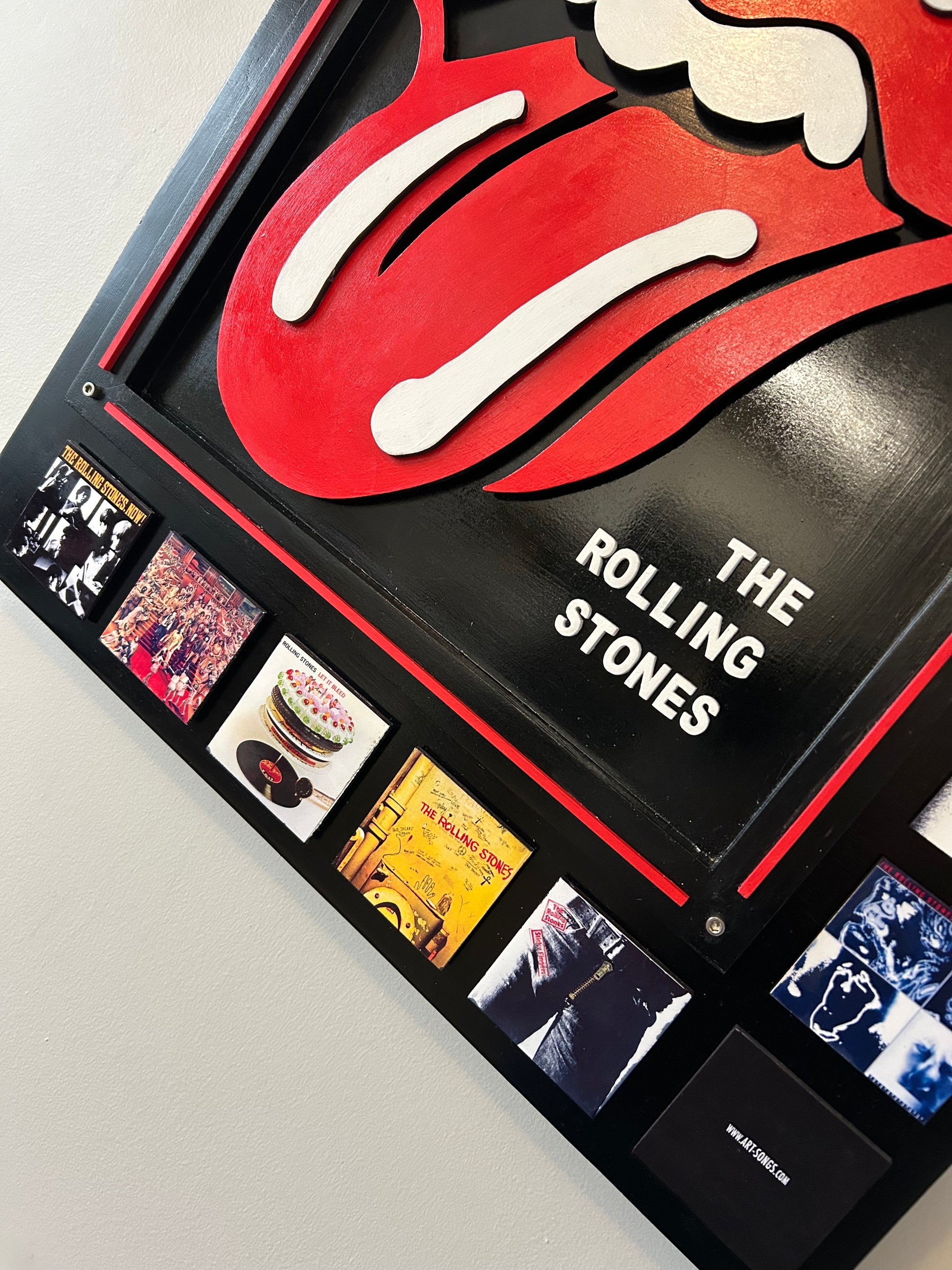 HOT LIPS - Probably one of the most iconic symbols of rock & roll and music. The outer frame is decorated with iconic Stones albums covers. You select 10 album covers.
