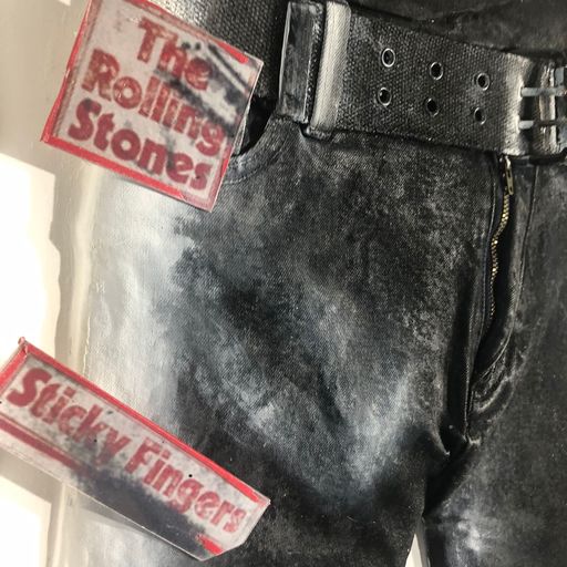 A true conversation piece. The iconic Stones cover the jeans with working zipper.