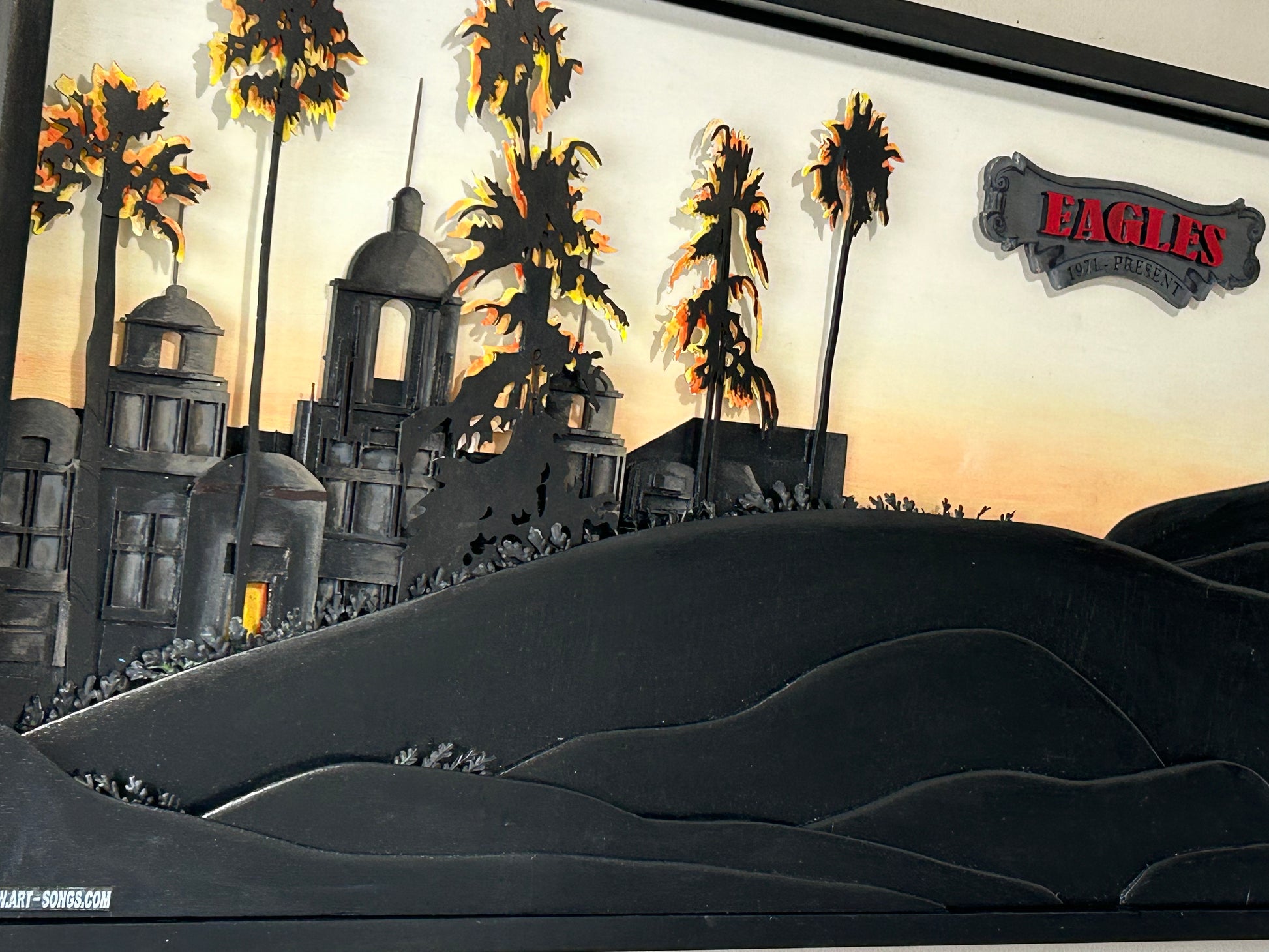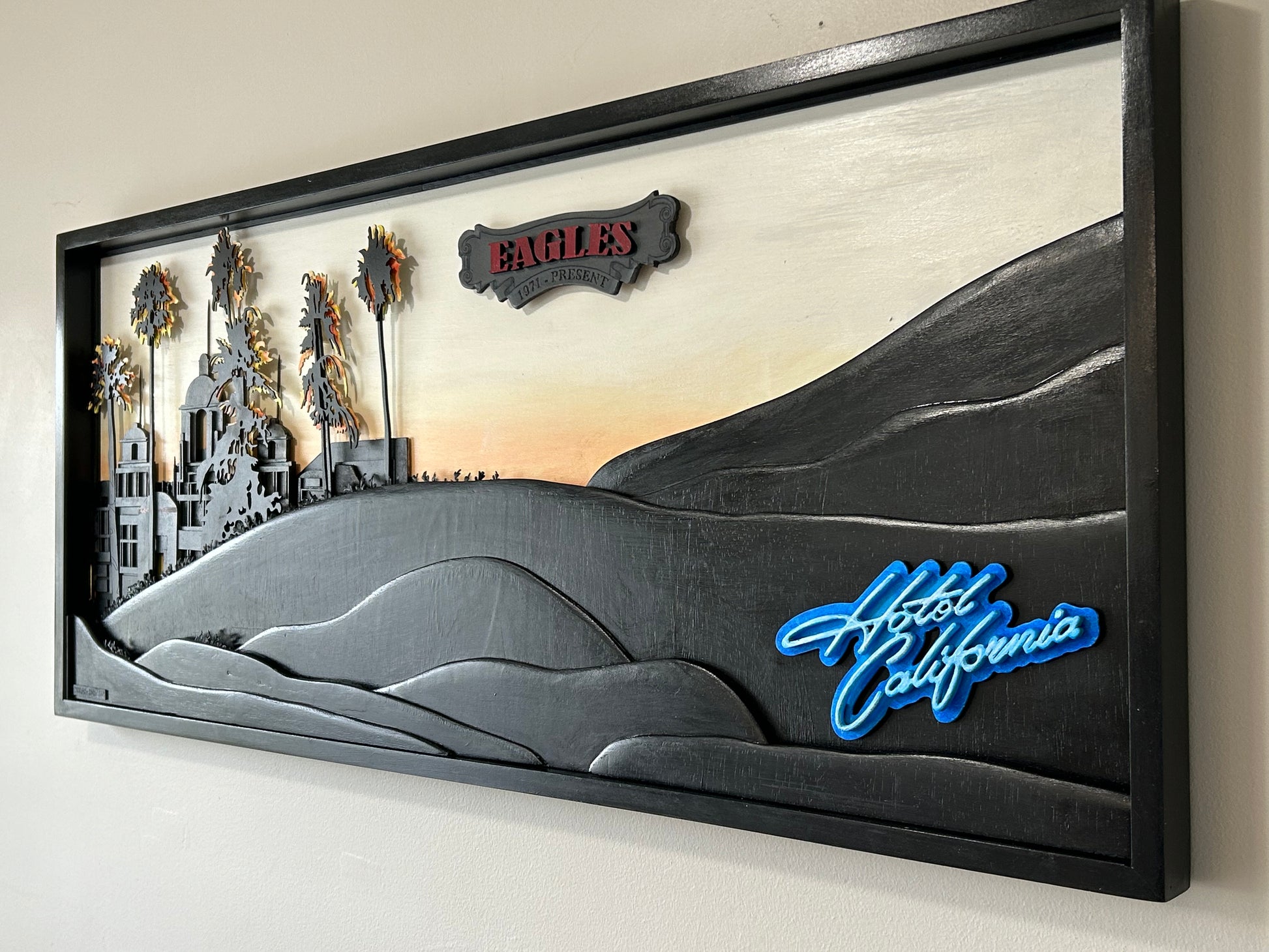 I took the general design of the iconic album cover Hotel California and made it 3D to a specific size requested by the client.
