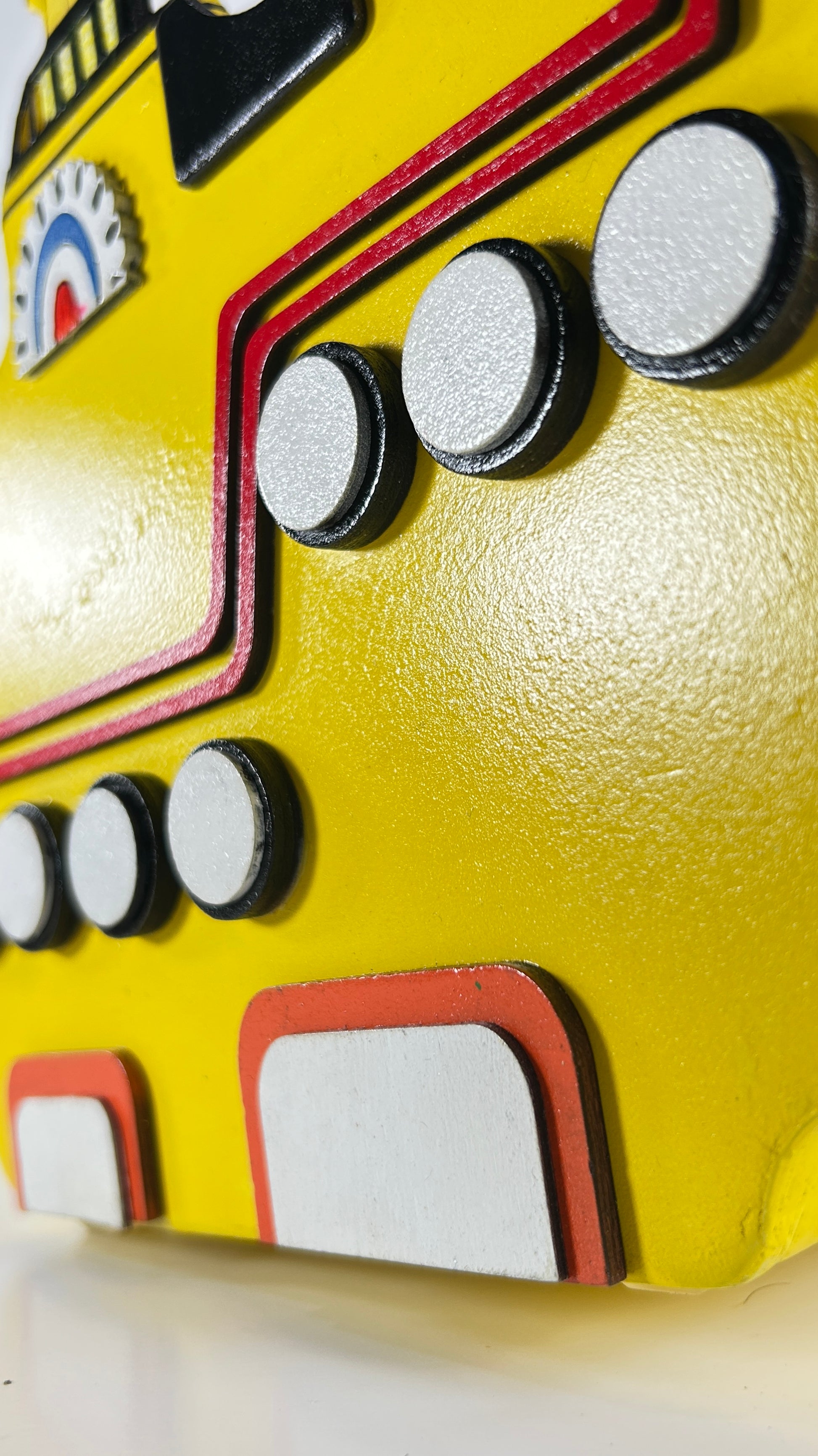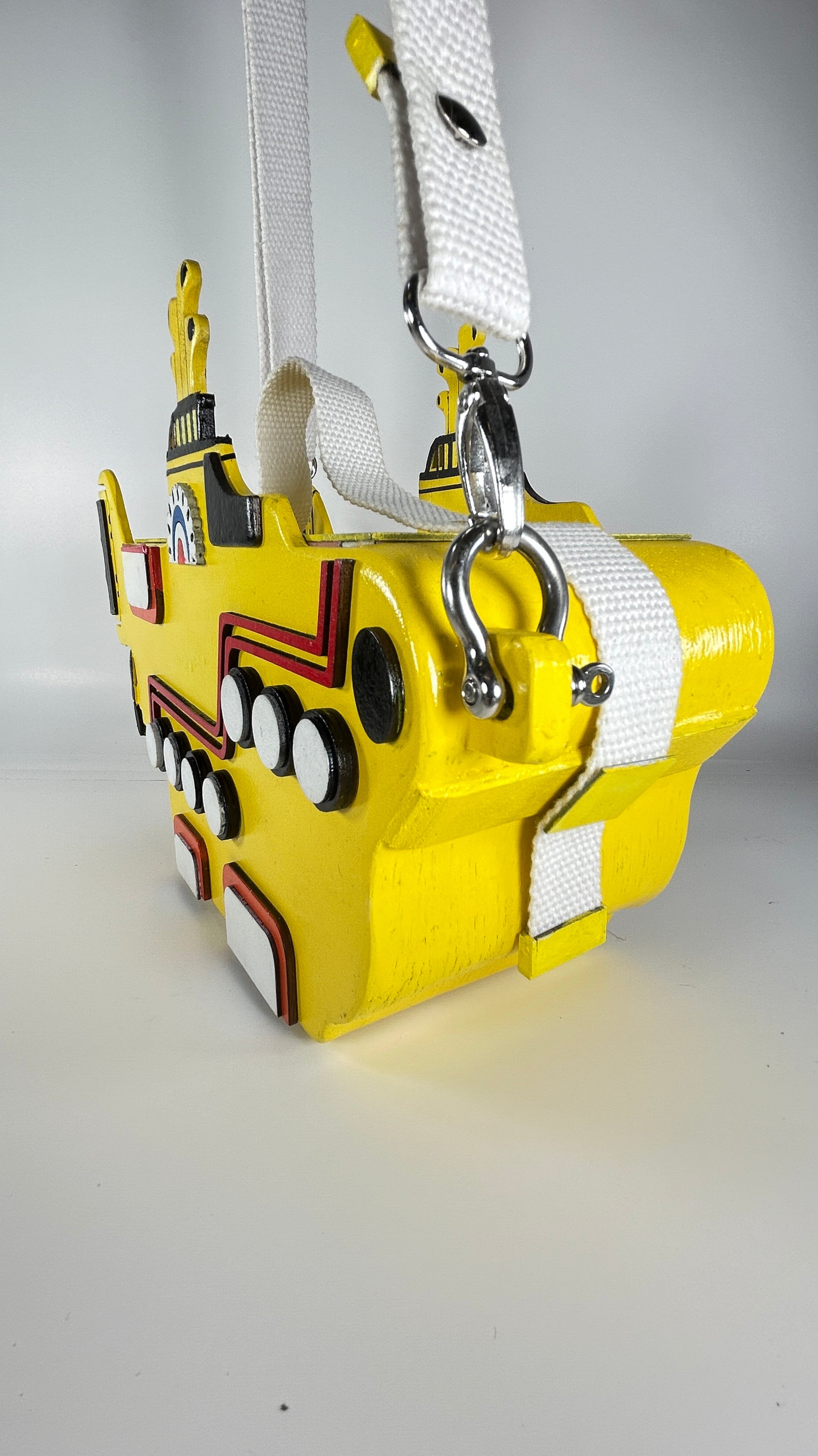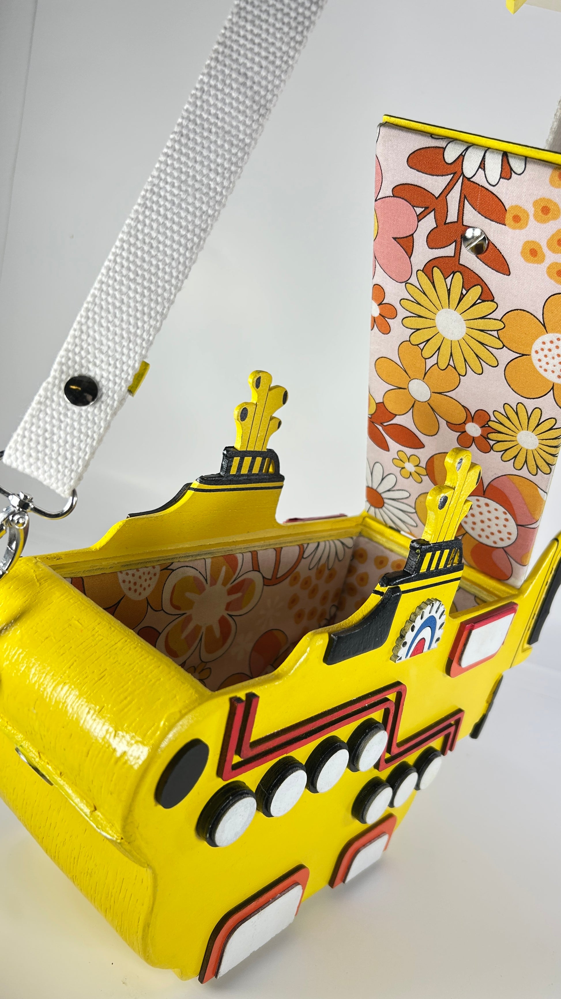 I made this handbag inspired by the iconic Beatles' "Yellow Submarine". It's all handmade with durable treated plywoods. Stainless steel nautical hardware. The inside is padded and lined with a beautiful 60's theme fabric. This makes a one of a kind, unique and original gift.